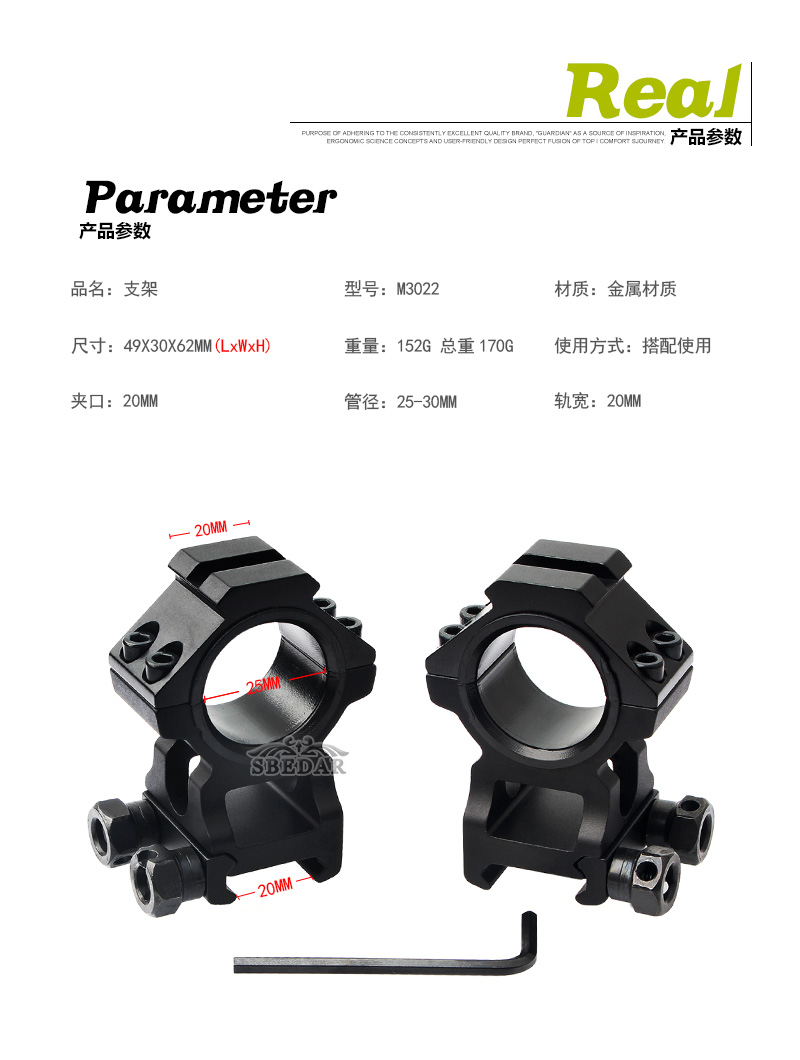 30/25mm管徑雙訂瞄準鏡支架 20mm導軌瞄準器夾具M3022
