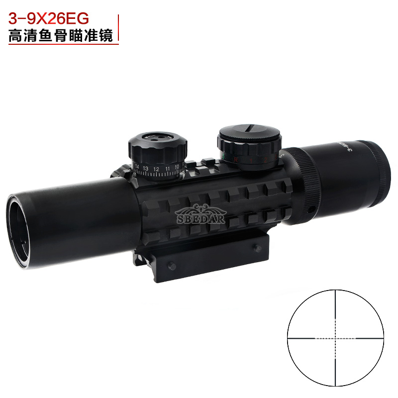 短款高倍3-9x26EG魚骨紅綠光十線瞄準鏡