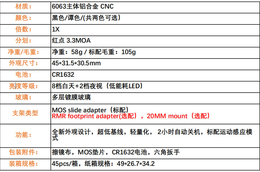 MPS 封閉式內紅點超低基線內置運動感應模式智能休眠喚醒