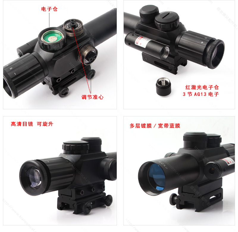 發(fā)光的紅色和綠色的米點十字線,與5個層次的亮度調(diào)整每個顏色。