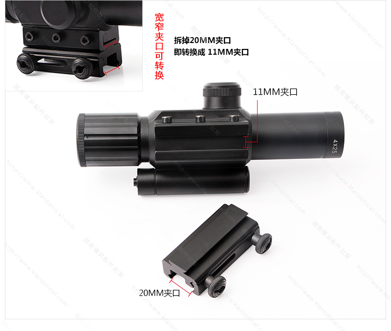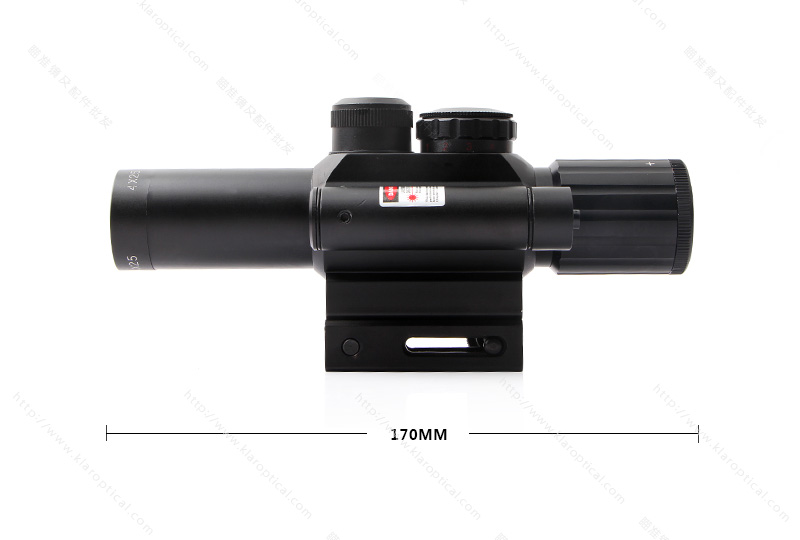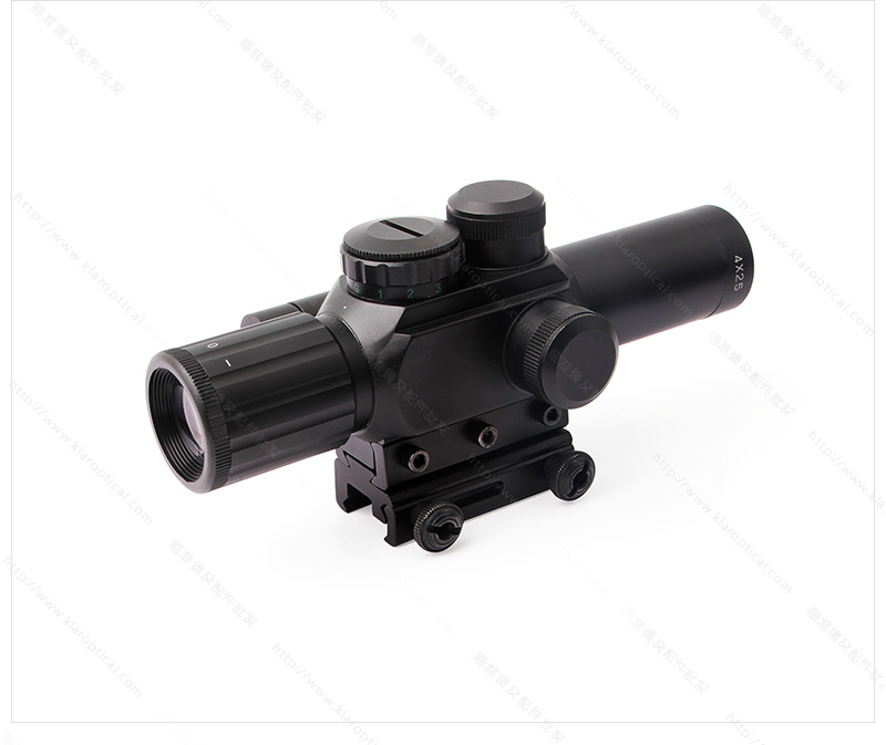 4X25步槍瞄準(zhǔn)具紅色激光瞄準(zhǔn)器和被照亮的紅色/綠色米點十字線,適用于所有野外條件。